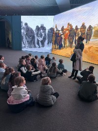 В ходе этой познавательной экскурсии ребята узнали, почему Репина называли щупальщиком души, что такое хоровой портрет, кто такие художники-реалисты, какие известные люди изображены на портретах художника, а также познакомились с шедеврами живописца - знаменитыми картинами «Бурлаки на Волге», «Садко», «Царевна Софья», «Крестный ход в Курской губернии» и многими другими. |